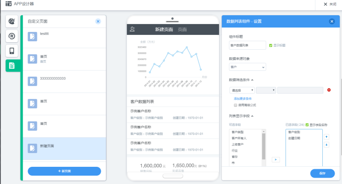 在自定义页面可以编辑详情页面的信息,包括组件信息和页面设置