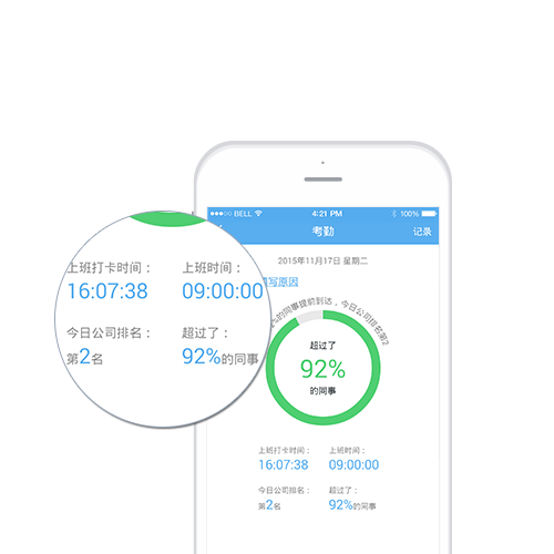 对于销售和老板都关注的签到,销售易CRM再次进行升级优化。销售人员打开销售易后会自动获取地理位置,关联周边客户。简化签到步骤,让一键完成,并帮助销售人员在见客户前回顾项目进展情况。同时考勤打卡新增在岗时间统计和排行功能。“您今天工作12小时,在公司排名前10%,注意休息哦”,更人性化,更符合工作场景。作为管理者,更可以直观看到团队的在岗状态和工作时长等考勤信息,方便通过行为管理提高团队业绩。